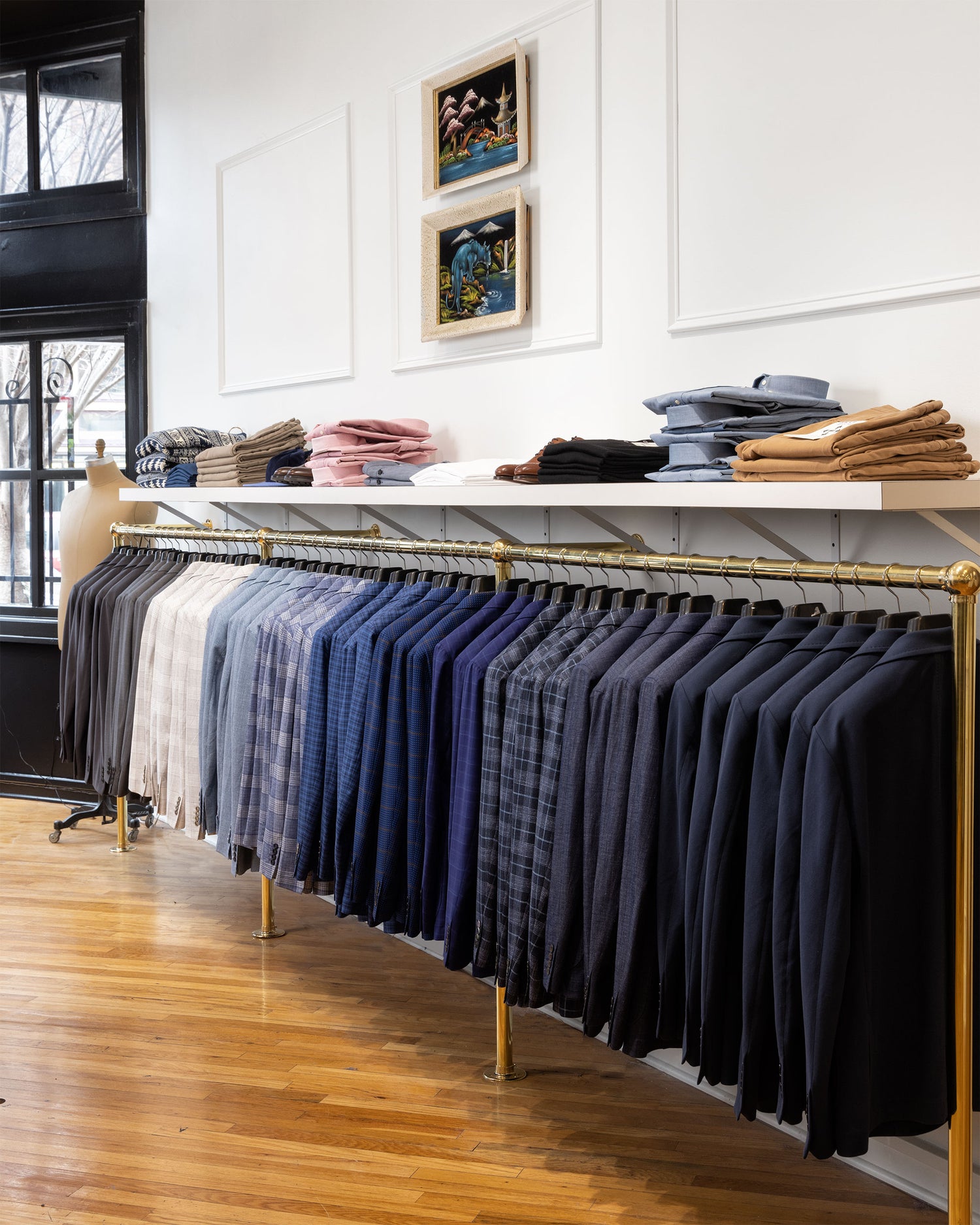 We stock a lot of great ready to wear options in our shop. A few hundred suits, a few hundred sportcoats, denim, trousers, dress shirts, shoes, and a good bit of casual wear as well.
